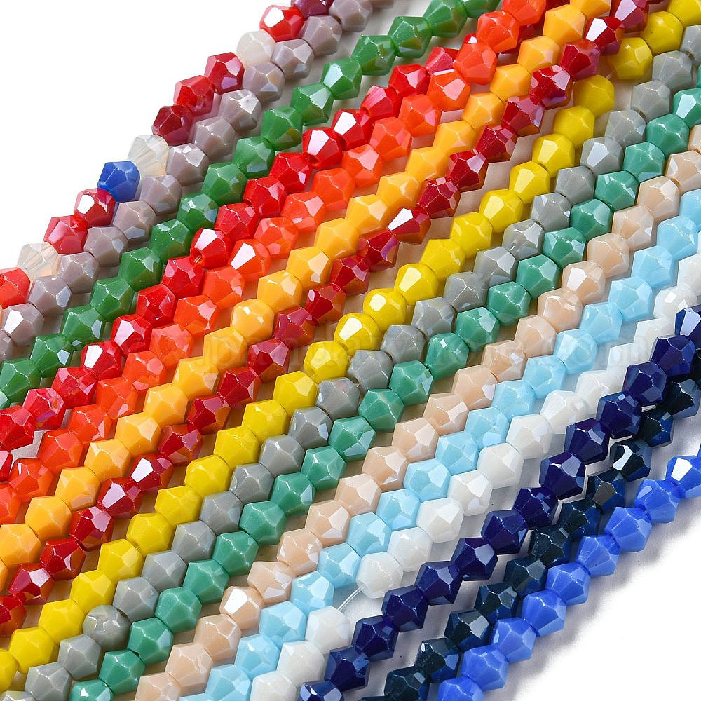 Непрозрачные однотонные гальванические стеклянные бусины, гальваническое покрытие, граненые, двухконусные