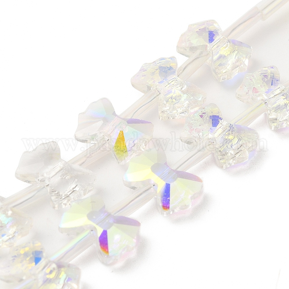 Гальванические стеклянные бусины, с покрытием AB цвета, граненые, бантом