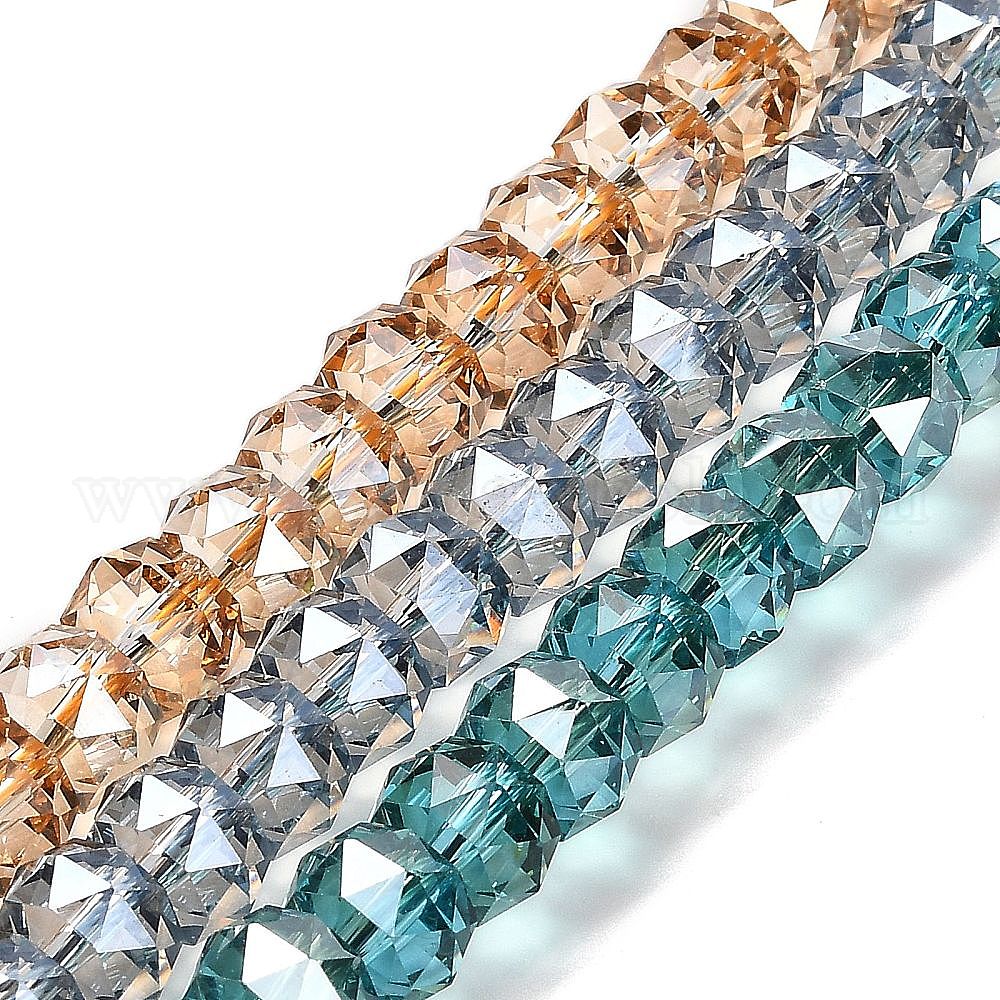 Прозрачные стеклянные бусины гальваническим пряди, гальваническое покрытие, граненые, баррель