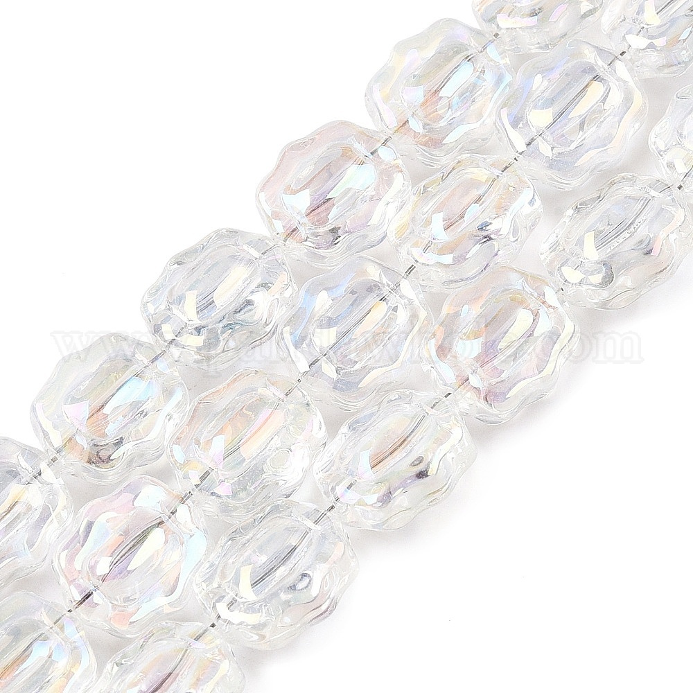 • Прозрачный Стеклянные бусины с гальваническим покрытием , цветок, прозрачные, 12x10x6~6.5 мм, отверстие : 1 мм, около 55 шт / нитка, 26.93'' (68.4 см)