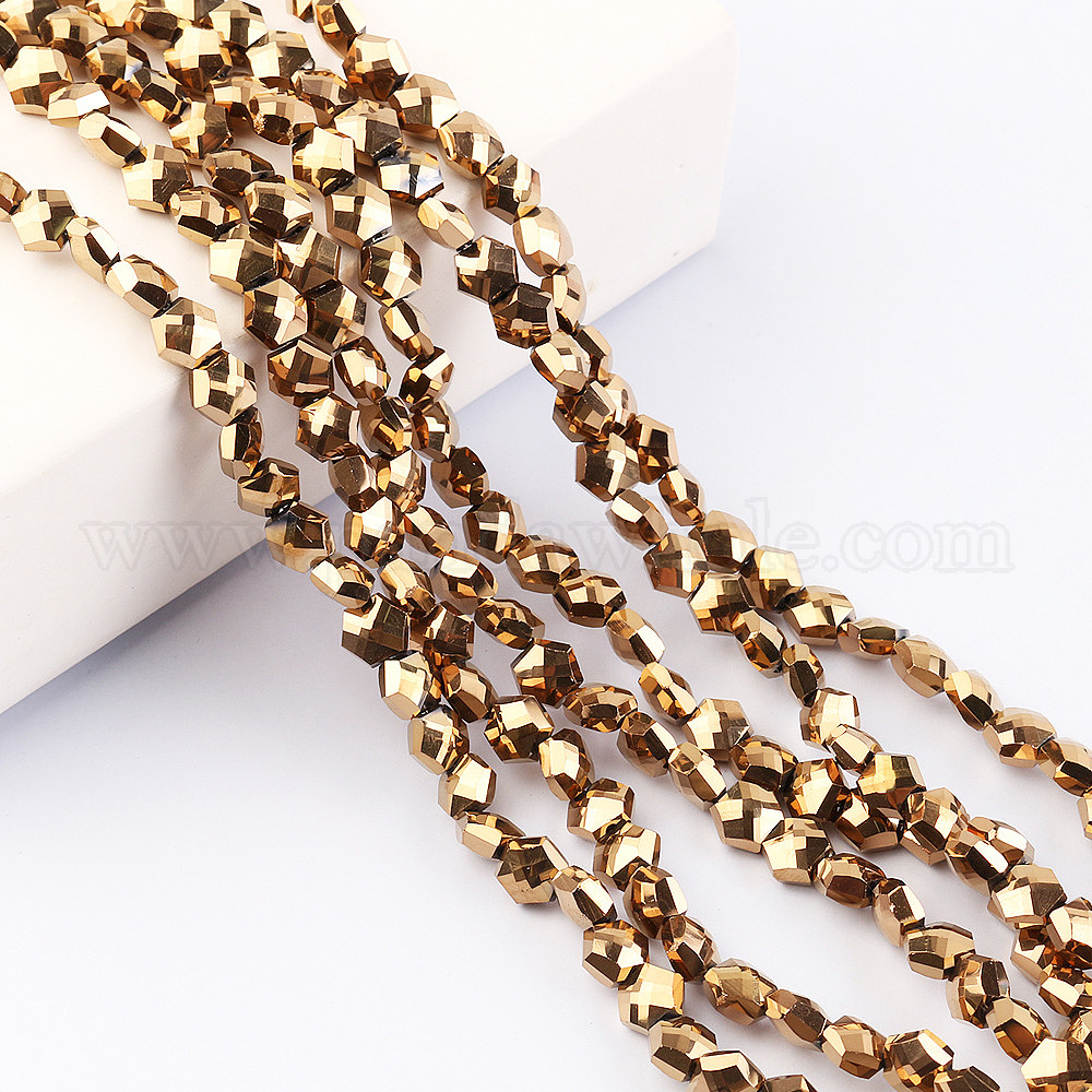 Стеклянные бусины с гальваническим покрытием , граненые, шестиугольник