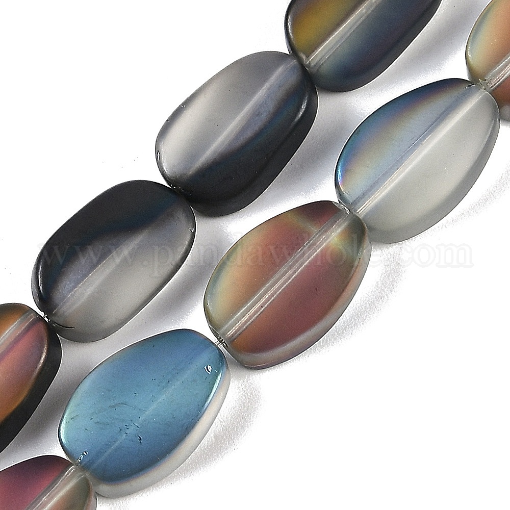 Стеклянные бусины с гальваническим покрытием , матовые, овальные