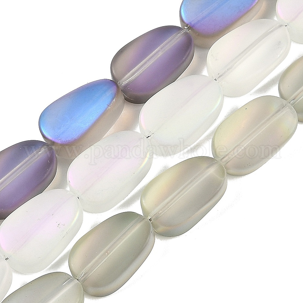 Стеклянные бусины с гальваническим покрытием , матовые, овальные