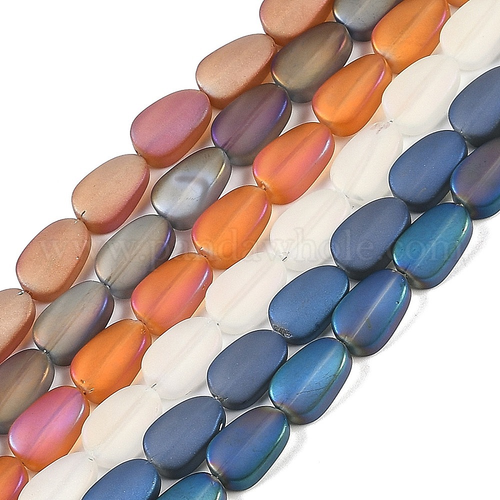 Стеклянные бусины с гальваническим покрытием , матовые, овальные