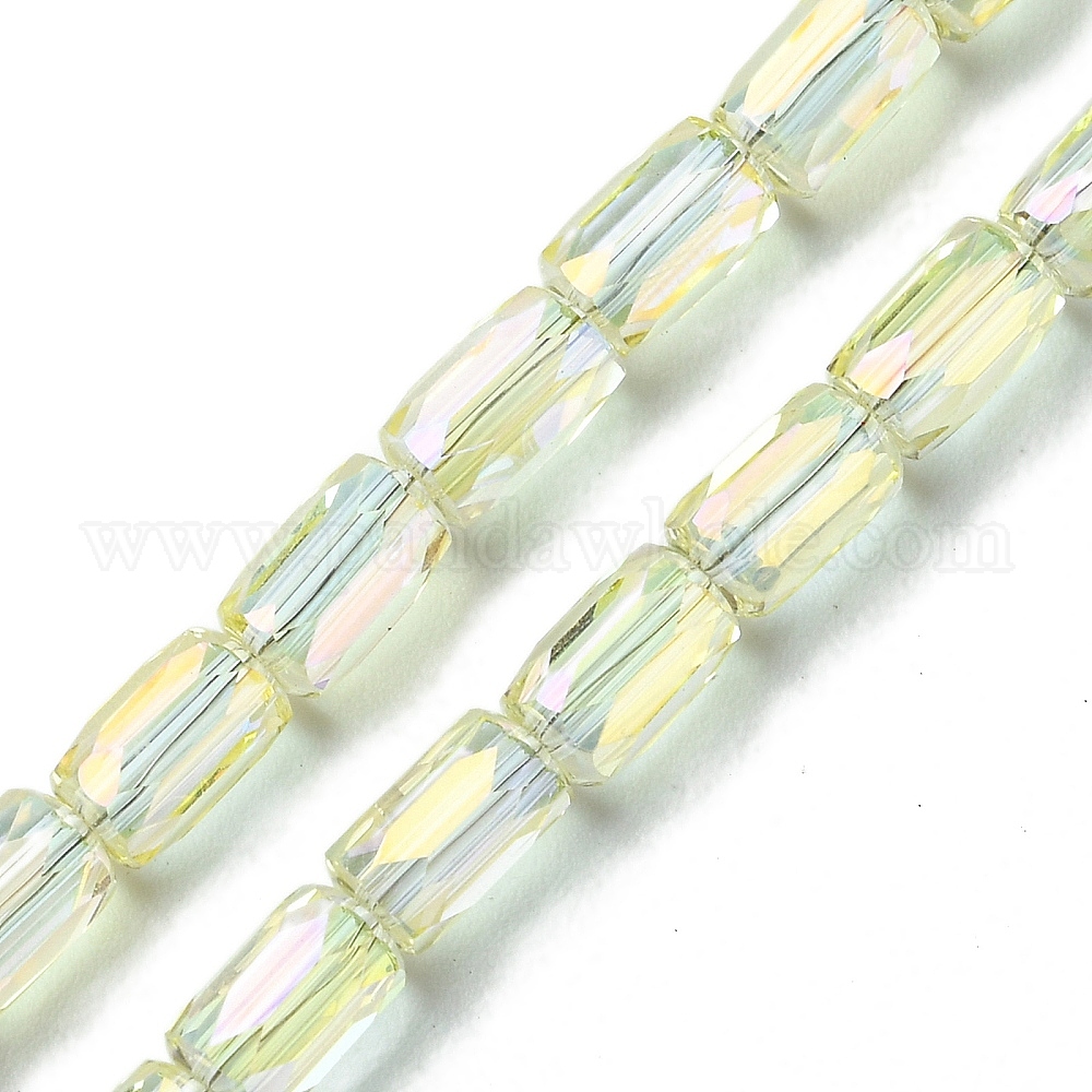 • Светло-желтый Стеклянные бусины с гальваническим покрытием , с полным покрытием цвета радуги, граненые, колонка, светло-желтый, 6x4 мм, отверстие : 0.9 мм, около 80 шт / нитка, 20.31'' (51.6 см)