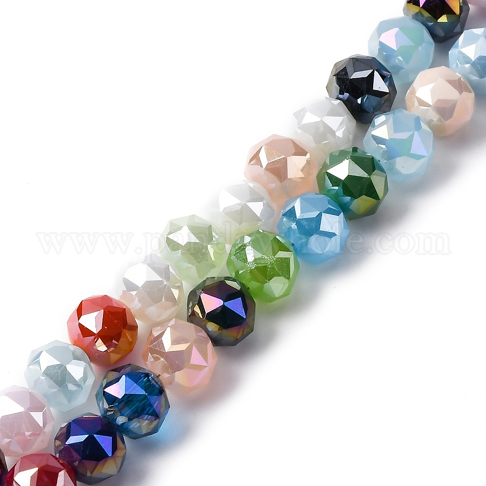 Гальванические непрозрачные стеклянные бусины, круглые, граненые