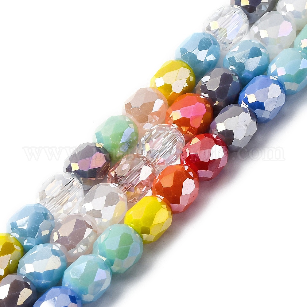 • Разноцветный Гальванические непрозрачные стеклянные бусины, рондель, граненые, красочный, 8x8 мм, отверстие : 1.5 мм, около 48 шт / нитка, 15.55'' (39.5 см)