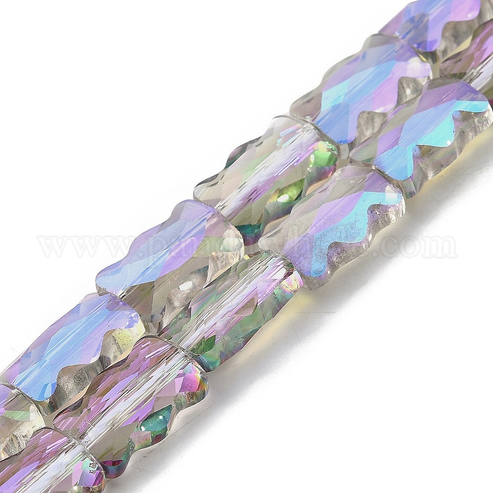Стеклянные бусины с гальваническим покрытием , прямоугольные, половина рианбоу покрытый пластиной, граненые