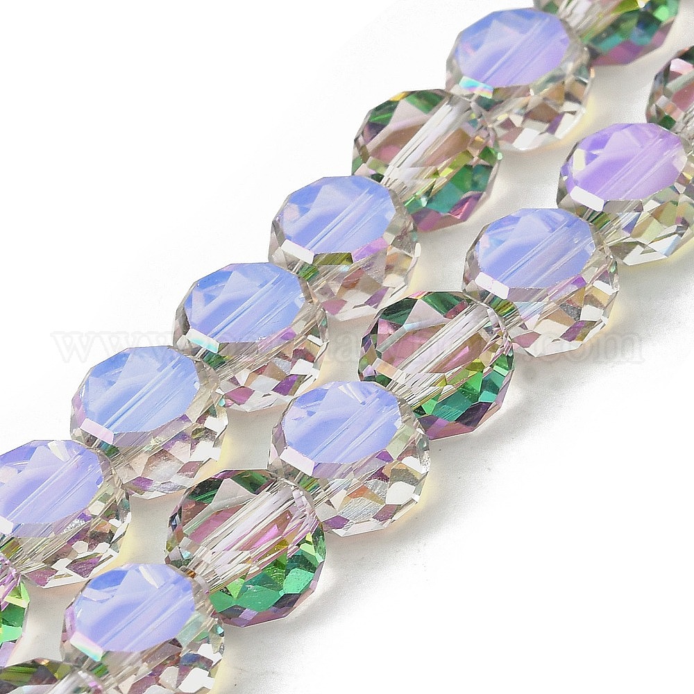 Стеклянные бусины с гальваническим покрытием , плоско-круглые, половина рианбоу покрытый пластиной, граненые