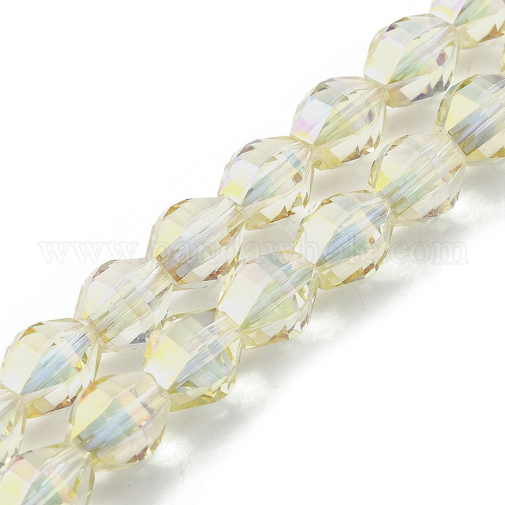 Стеклянные бусины с гальваническим покрытием , двухконусные, половина рианбоу покрытый пластиной, граненые