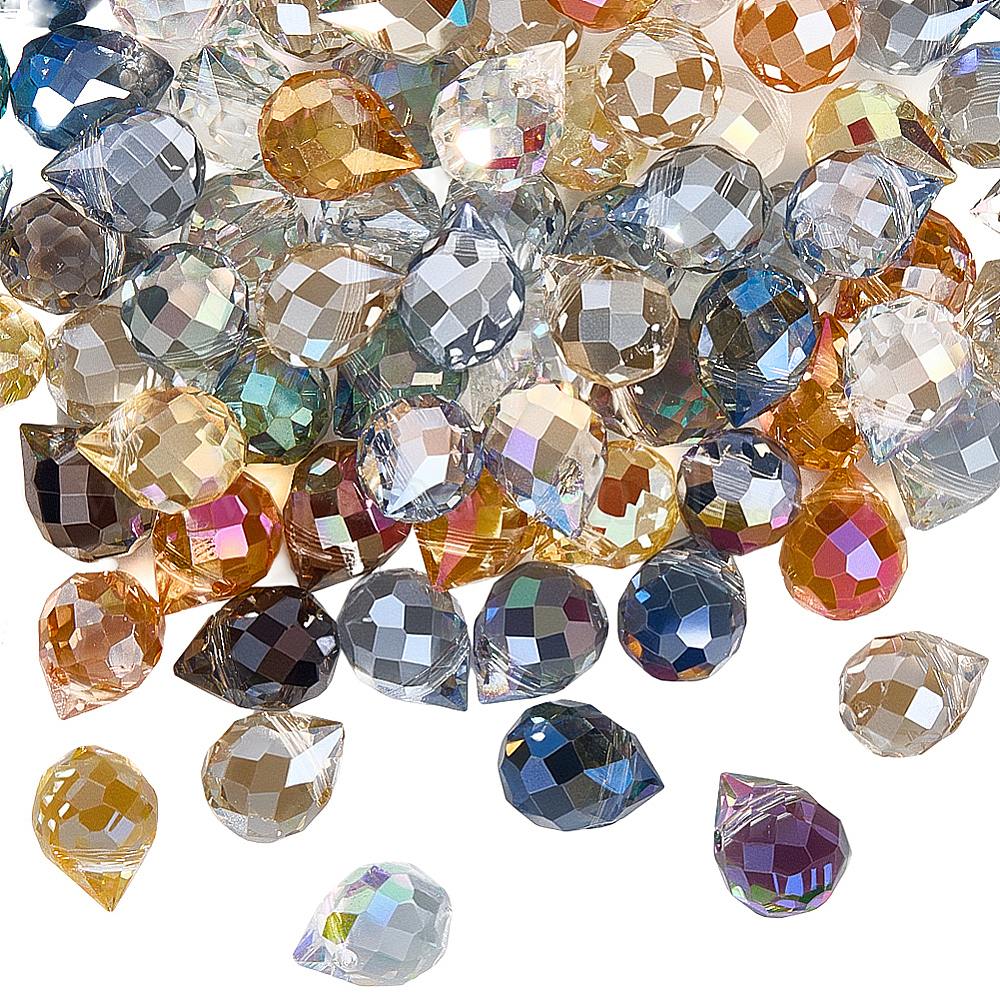 120стеклянные бусины с гальваническим покрытием, граненые, слезинки, Топ пробуренной