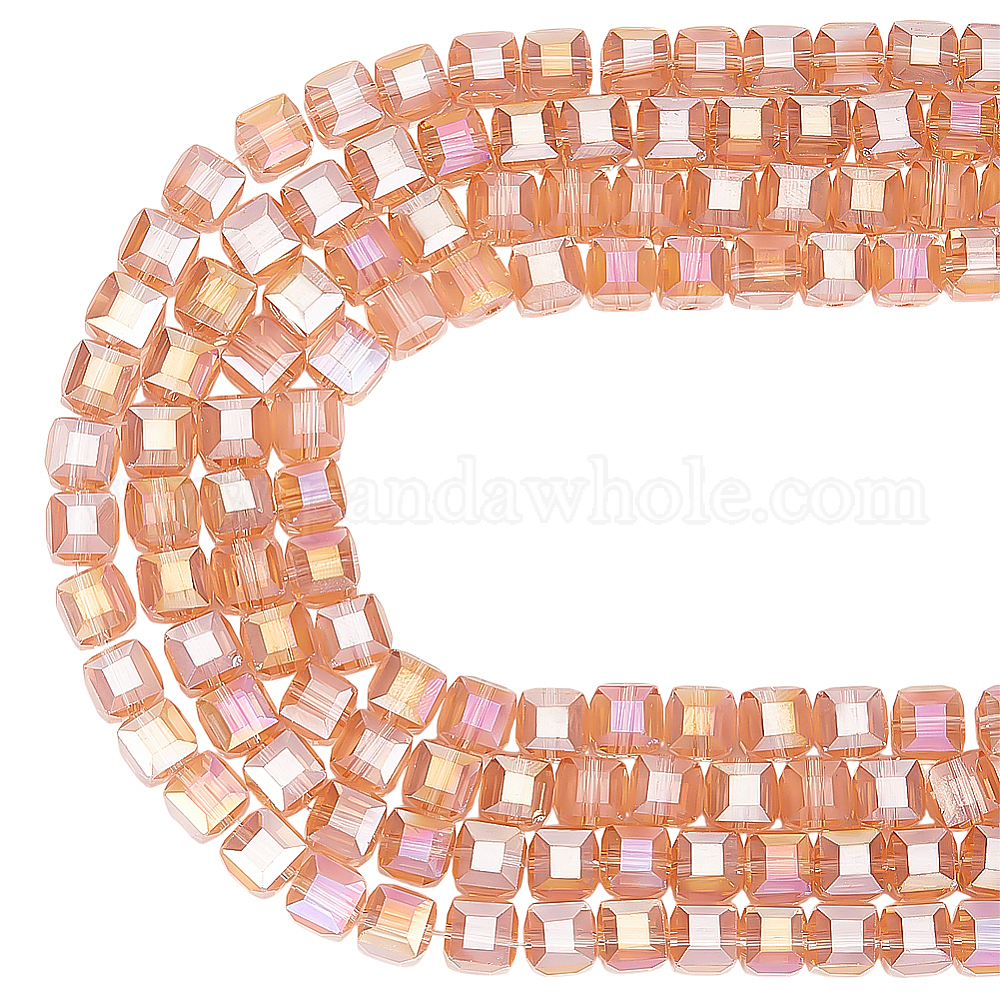 2 пряди гальванические стеклянные бусины пряди, с покрытием AB цвета, граненые, кубические