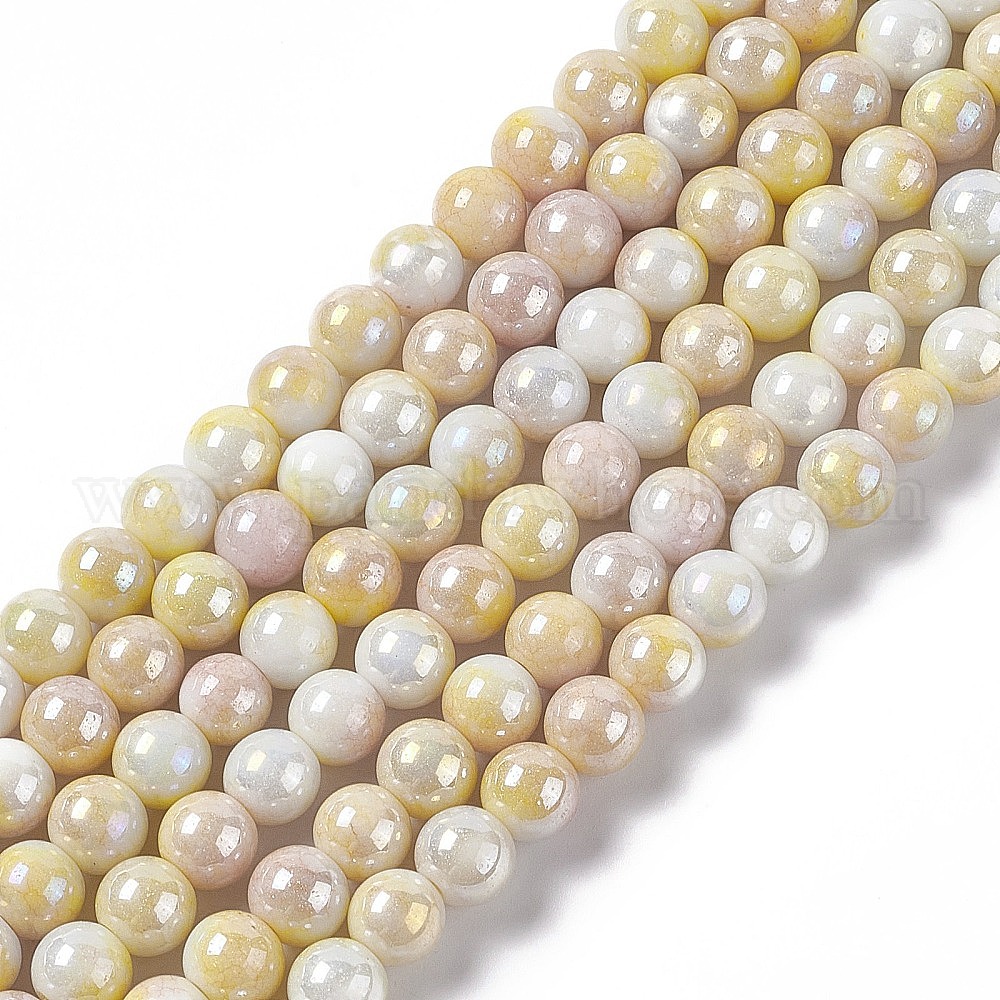 Гальванические стеклянные бусины, с покрытием AB цвета, круглые