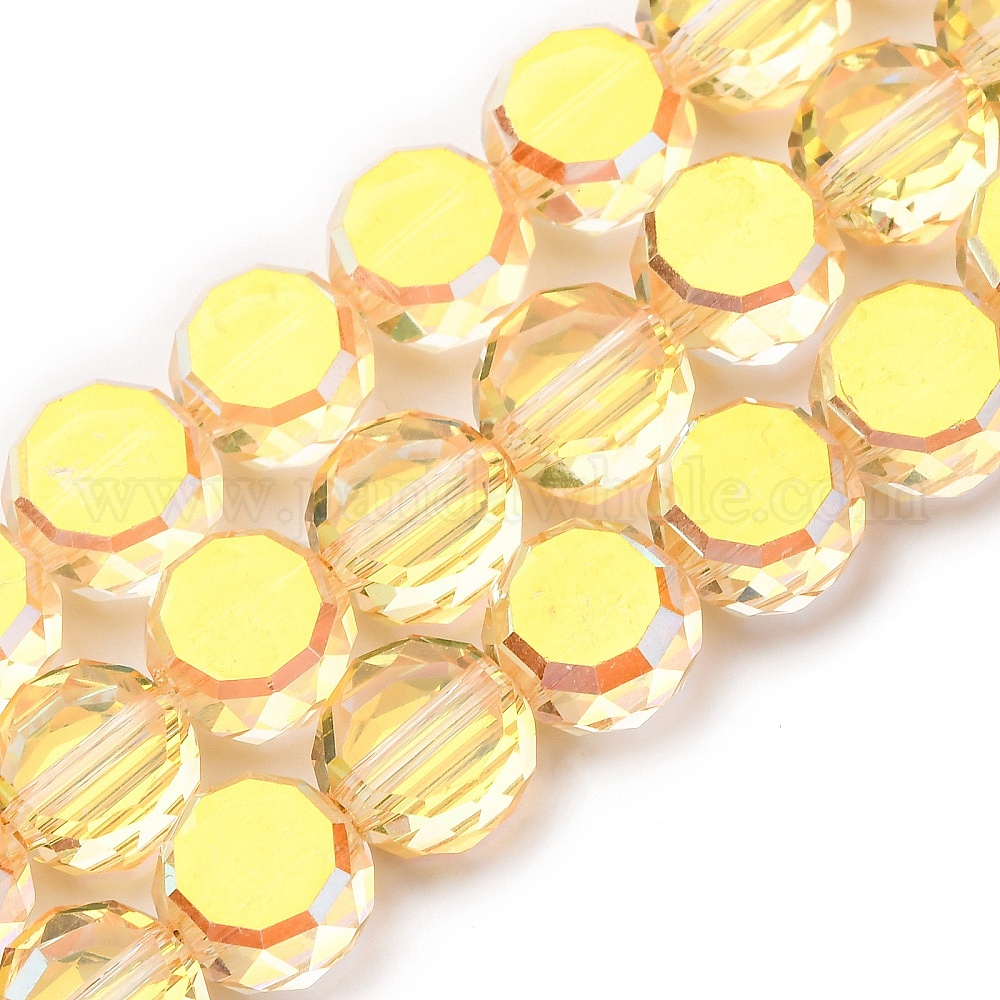 Стеклянные бусины с гальваническим покрытием , плоско-круглые, с половиным покрытием, граненые