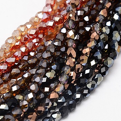 Стеклянные бусины с гальваническим покрытием , кубические, половина блеск гальваническим, граненые