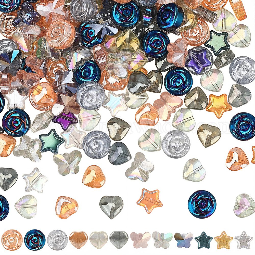 240 шт. 12 стили гальванических стеклянных бусин, гальваническое покрытие, разнообразные