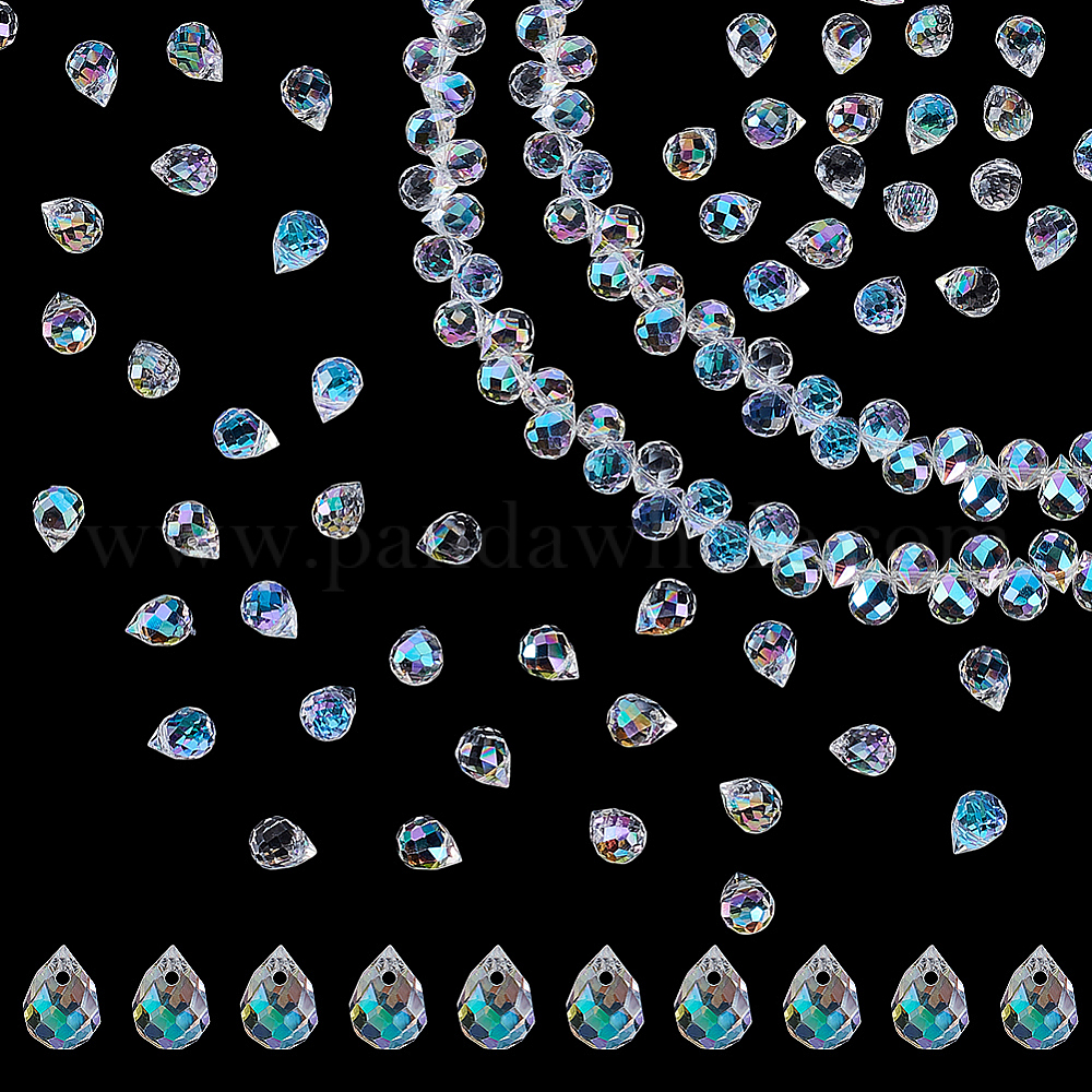 • Прозрачный АВ 2пряди гальванизированные стеклянные бусины пряди, слеза, граненые, ясно AB, 10x8 мм, отверстие : 1.2 мм, около 95 шт / нитка, 20.08 дюйм (51 см)
