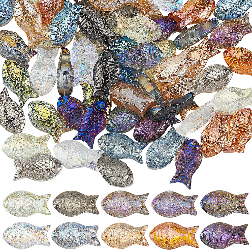80шт. 10цветные стеклянные бусины ручной работы, изготовленные методом гальванического покрытия, с покрытием цвета радуги, рыба, Топ пробуренной