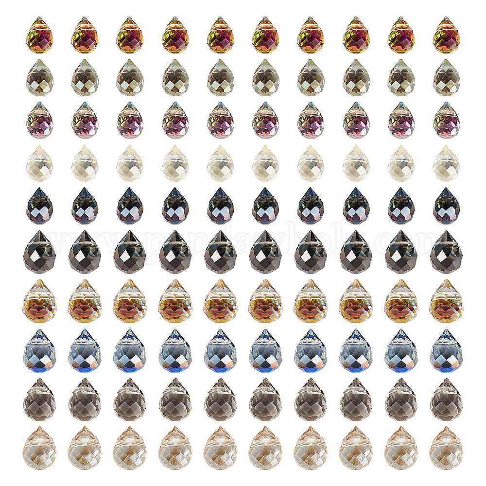100шт 2 стили прозрачные гальванические стеклянные бусины, граненые, каплевидная капля с просверленным верхом, с полным покрытием цвета радуги
