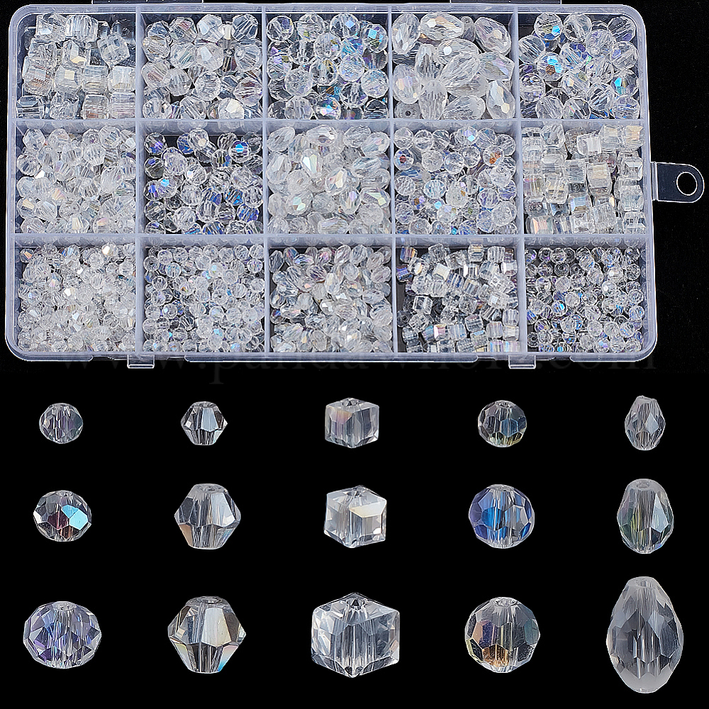 15 стили гальванических стеклянных бусин, с половиным покрытием цвета радуги, граненые, разнообразные