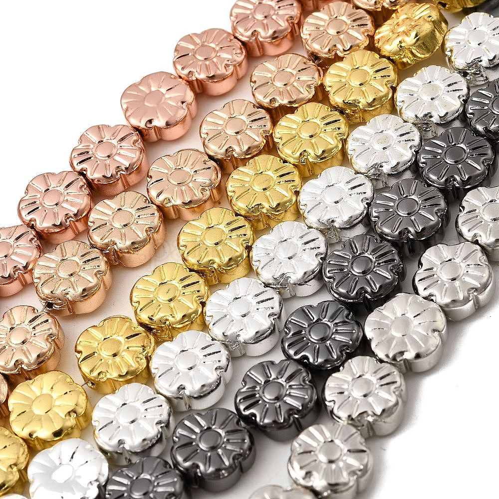 Стеклянные бусины с гальваническим покрытием , цветок, граненые