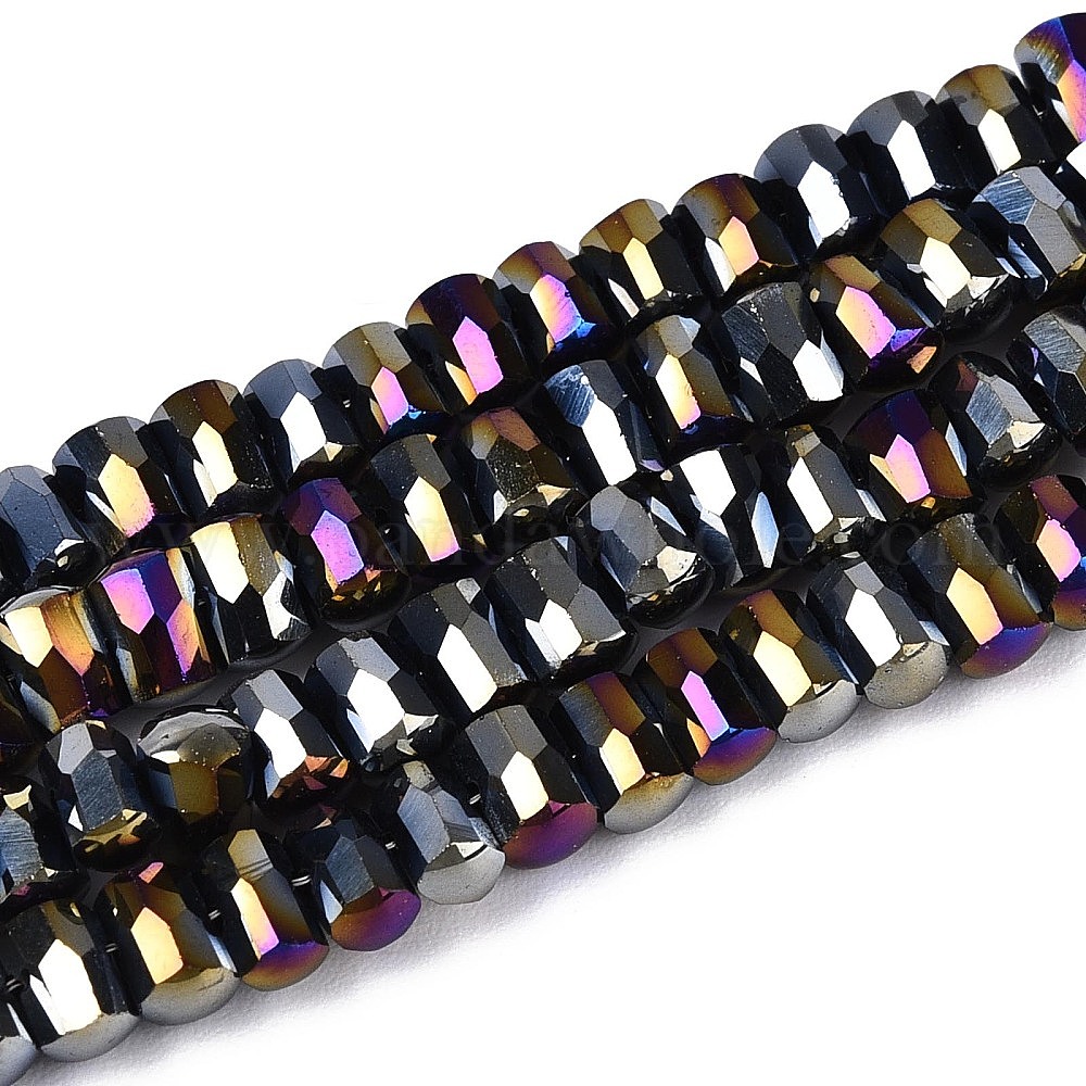 Гальванические непрозрачные стеклянные бусины, колонка, граненые, с покрытием AB цвета
