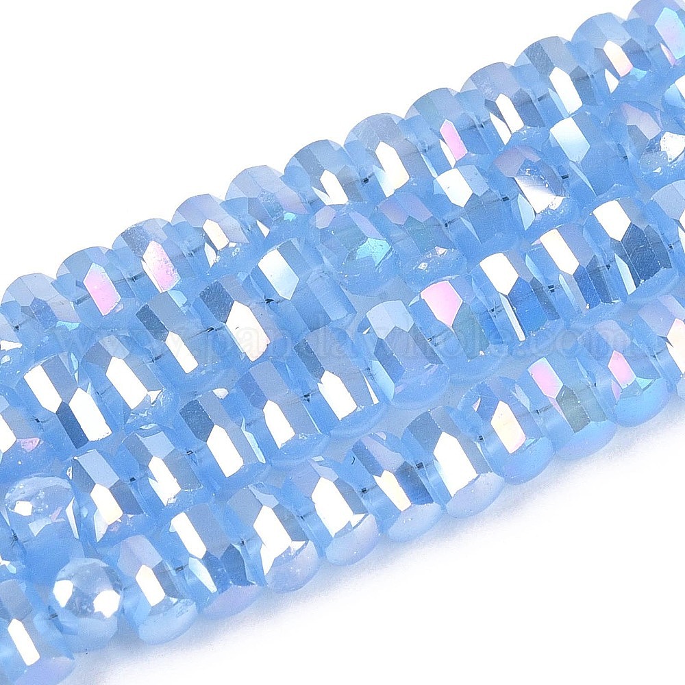 Гальванические стекляныне бусины, имитация нефрита, колонка, граненые, с покрытием AB цвета