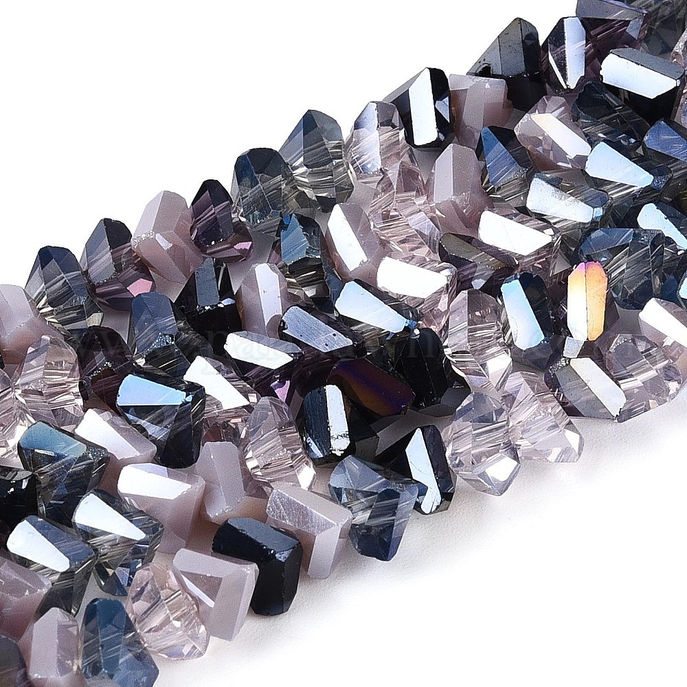 Стеклянные бусины с гальваническим покрытием , треугольные, граненые
