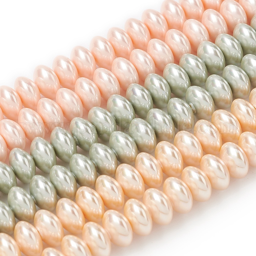 Нити бусин из гальванизированного непрозрачного стекла, имитирующие жемчуг, рондель