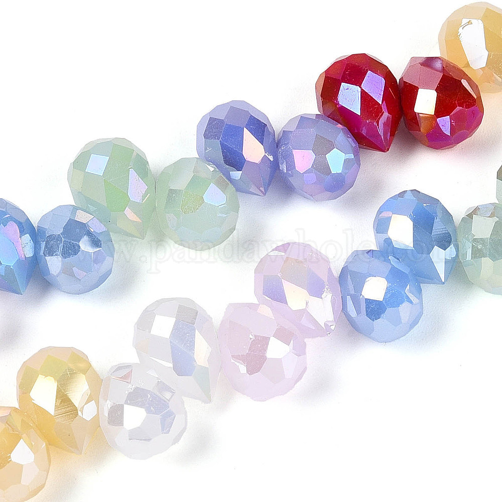 Смешанные стили гальванизированных имитаций нефрита/непрозрачных стеклянных бусин, слеза, сверху просверленные бусы, граненые