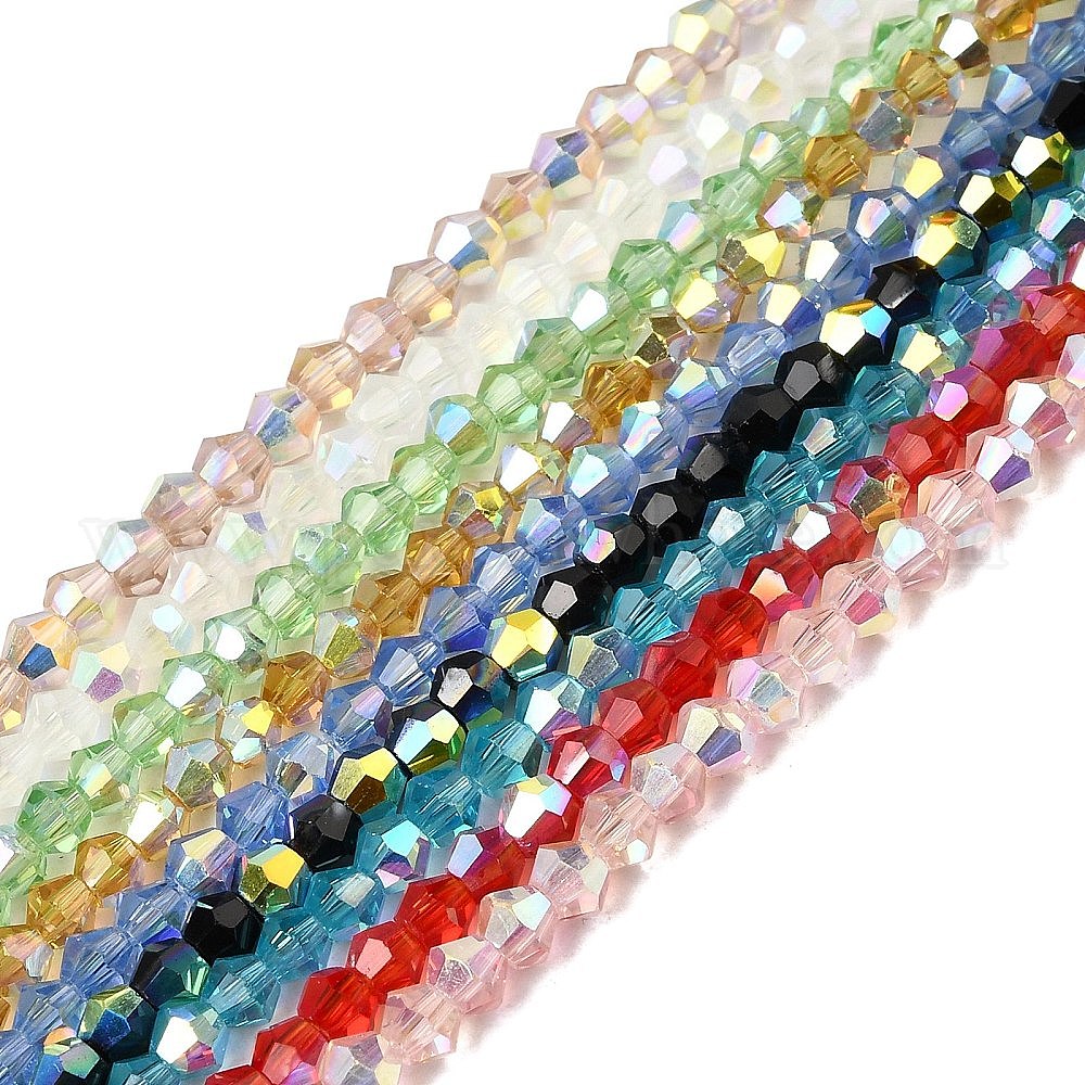 • Прозрачный АВ Ab цветные прозрачные стеклянные бусины пряди, двухконусные, граненые, с половиным покрытием, ясно AB, 2.5x3 мм, отверстие : 0.7 мм, около 148~149 шт / нитка, 15.35~15.55'' (39~39.5 см)