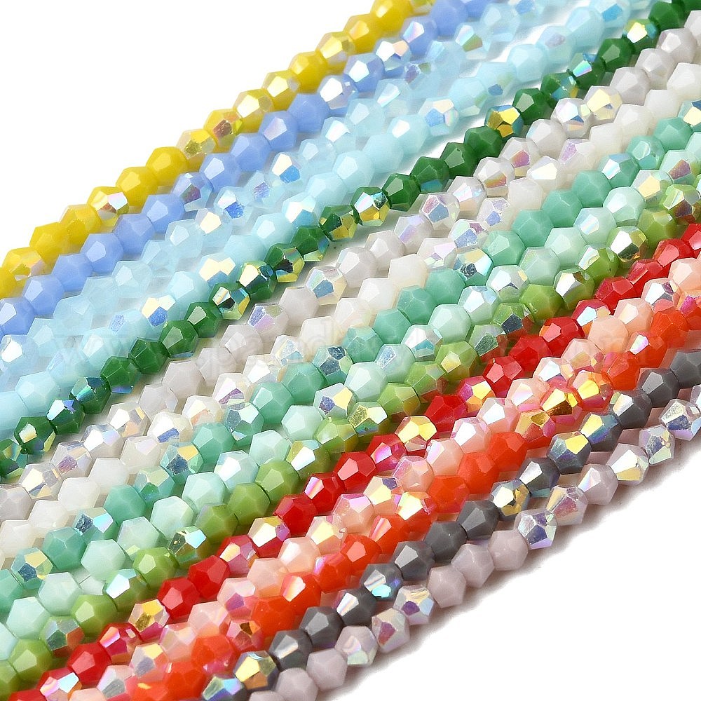 Нити из непрозрачных стеклянных бусин с цветным покрытием AB, двухконусные, граненые