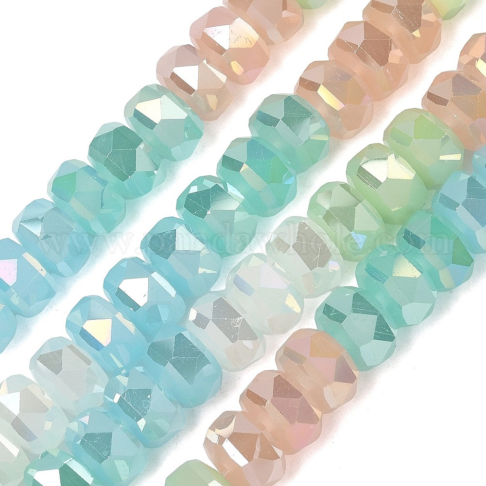 • (52) Непрозрачная лаванда Гальванизируйте прозрачное стекло бисер нитей, рондель, с покрытием AB цвета, граненые, разноцветные, 8x5 мм, отверстие : 1.2 мм, около 60 шт / нитка, 14.61'' (37.1 см)