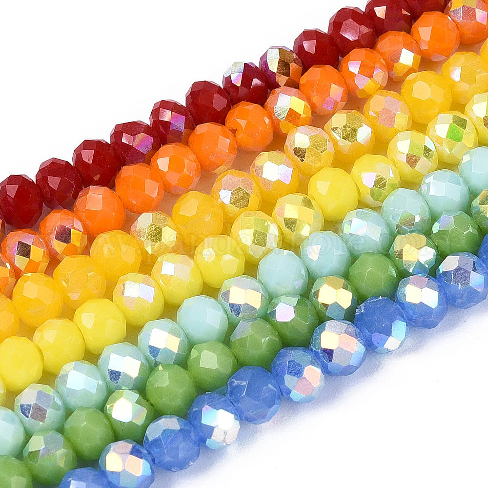 Нити из непрозрачных стеклянных бусин-ронделей с цветным покрытием ab, граненые