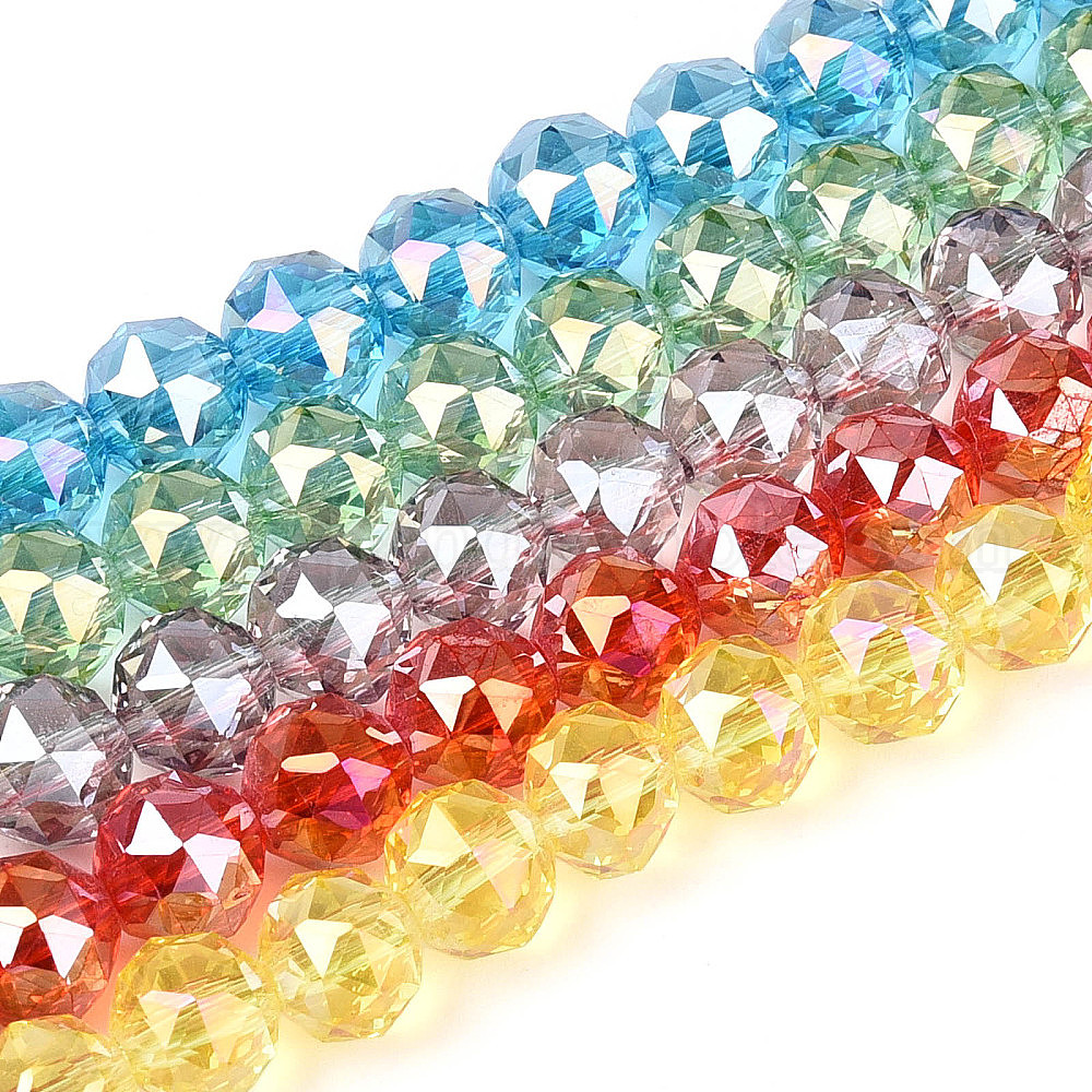 • Прозрачный Нити из прозрачных круглых бусин с цветным покрытием ab, граненые, прозрачные, 7.5~8.5x7~7.5 мм, отверстие : 1.2~1.6 мм, около 25~26 шт / нитка, 6.89~7.48'' (17.5~19 см)