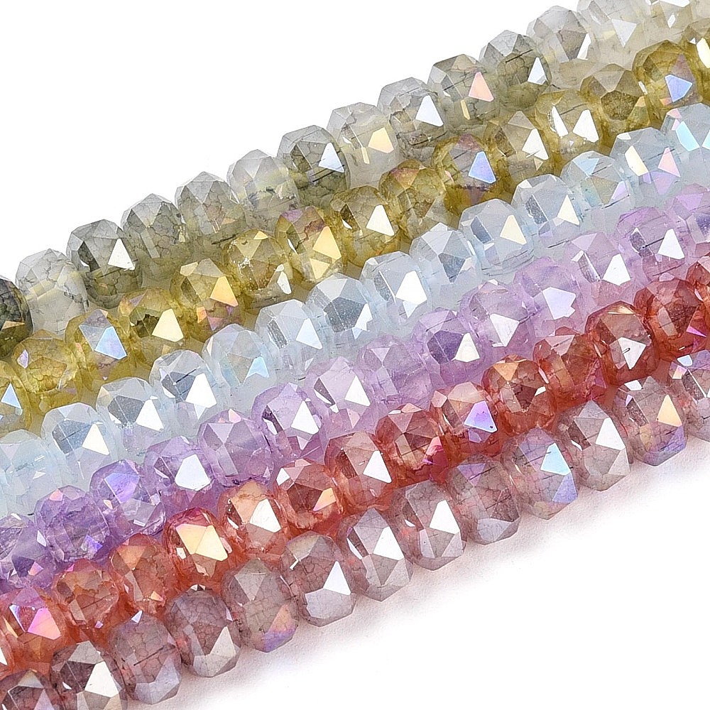 • (52) Непрозрачная лаванда Гальванизированные стеклянные бусины, имитирующие нефрит, с защитой от потускнения., рондель, градиент цвета, граненые, разноцветные, 5.5~6x4~4.5 мм, отверстие : 0.8~1.2 мм, около 84~93 шт / нитка, 13.78~14.96'' (35~38 см)