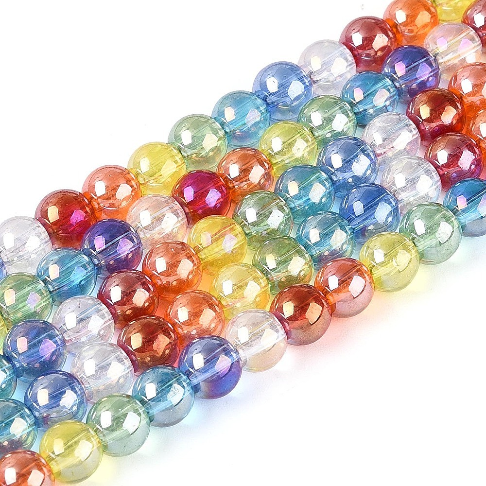 Стеклянные бусины с гальваническим покрытием , круглые, с покрытием цвета радуги