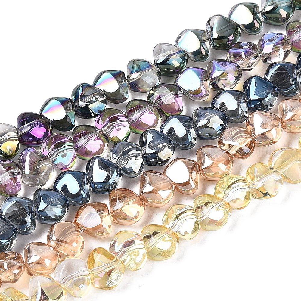 • Средний Аквамарин Гальванизируйте прозрачное стекло бисер нитей, самородки, Топ пробуренной, средний аквамарин, 6.5x7.5x4.5~5 мм, отверстие : 0.8~1 мм, около 99~100 шт / нитка, 21.26~22.24 дюйм (54~56.5 см)
