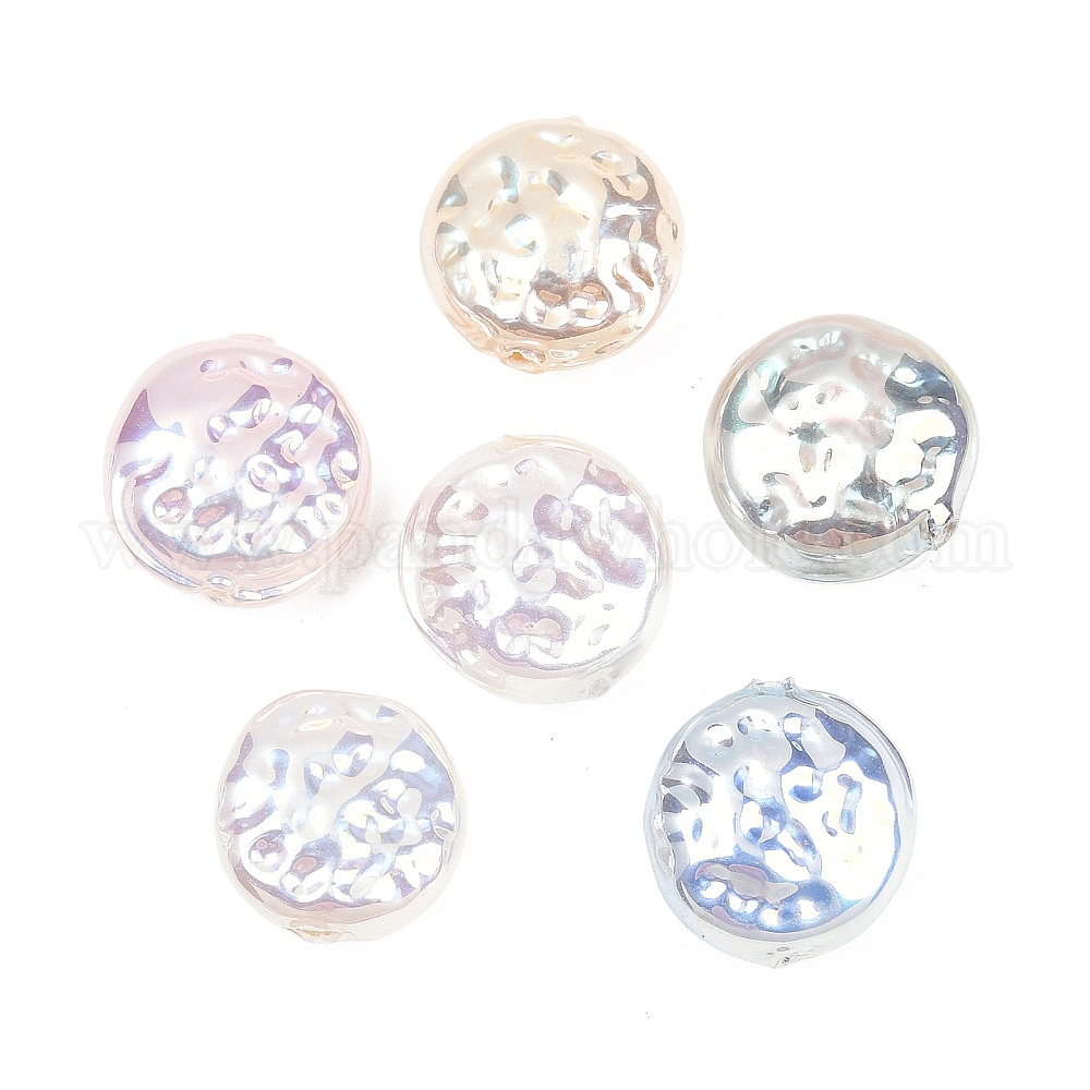 Гальванизированные стеклянные бусины, имитирующие жемчуг, плоско-круглые, текстура