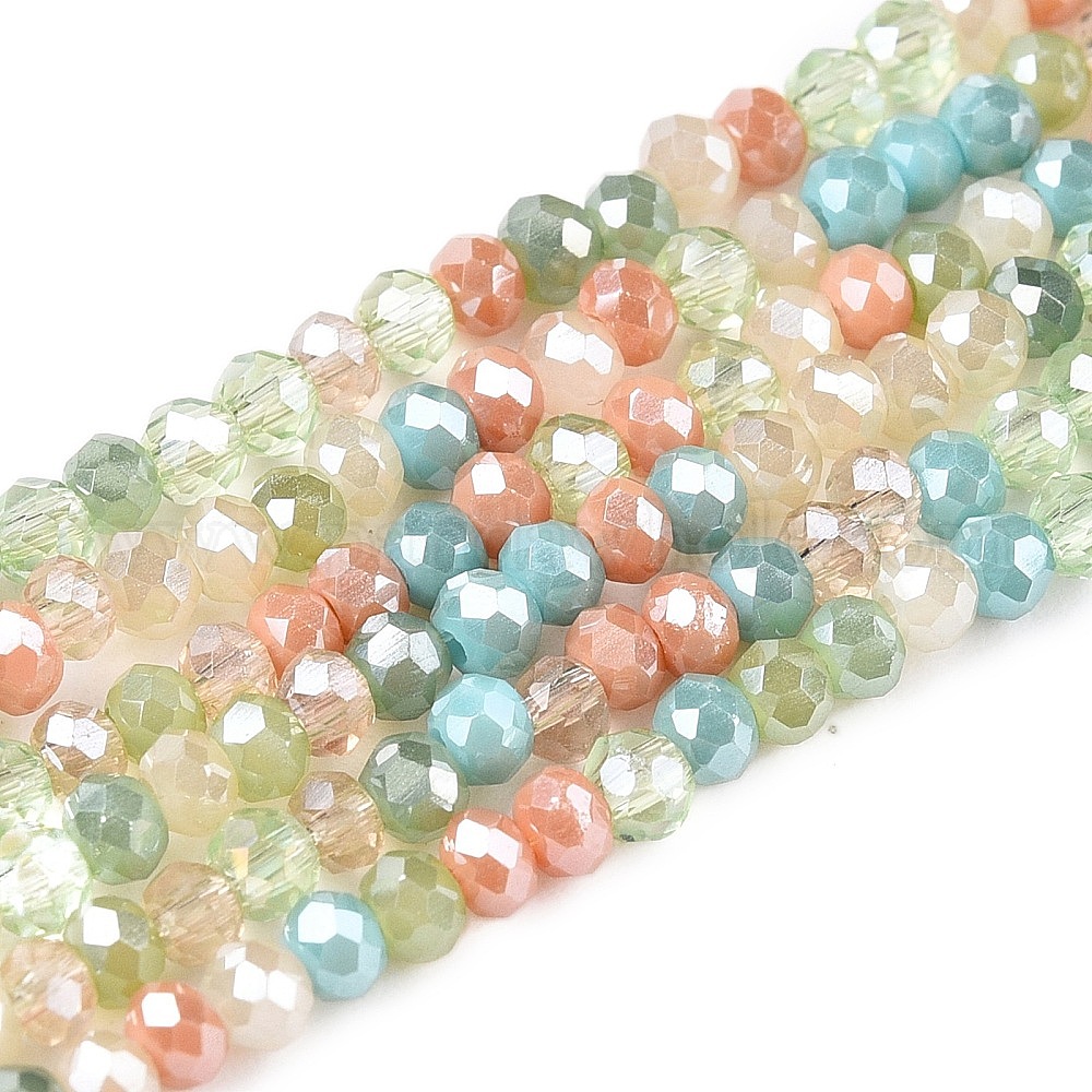 • Светло-зеленый Стеклянные бусины с гальваническим покрытием , граненый(32 граненый), рондель, светло-зеленый, 2.5x2 мм, отверстие : 0.6 мм, около 180~186 шт / нитка, 13.39~13.78 дюйм (34~35 см)