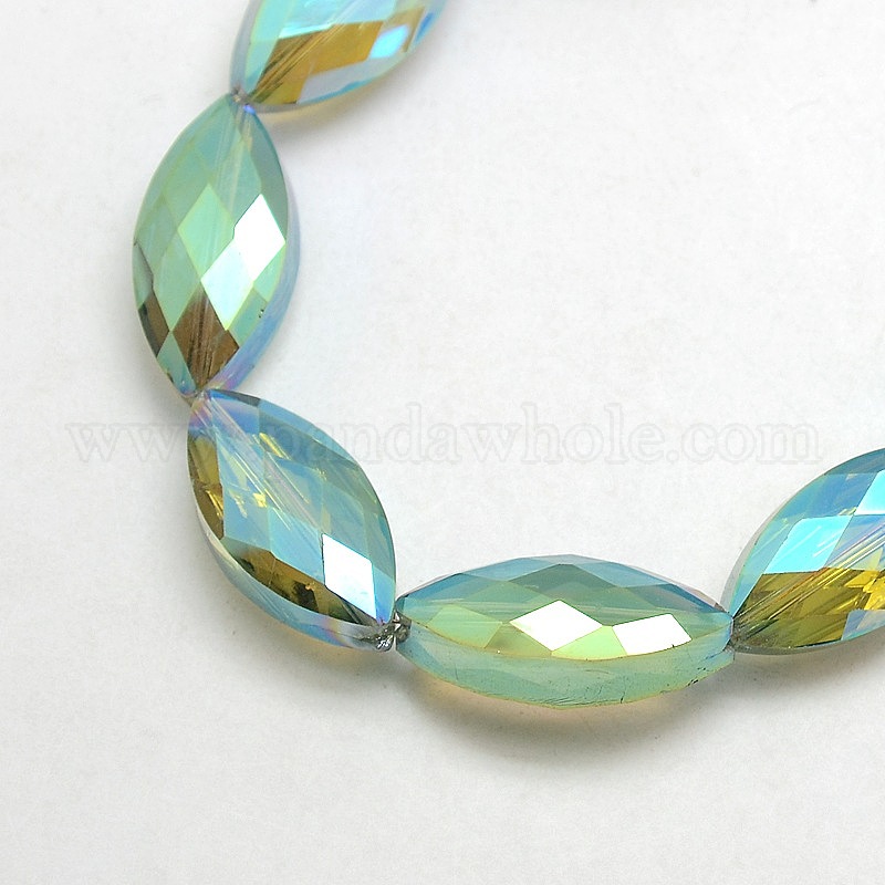 • Морско-зеленый Гальванических хрустального стекла лошадь шарики глаза пряди, граненые, радуги цвет покрытием, цвета морской волны, 25x12x8 мм, отверстие : 1 мм, около 30 шт / нитка, 29.5 дюйм