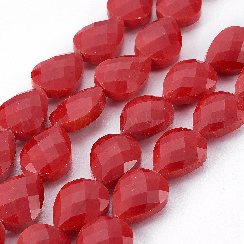 Жемчуг глянец покрытием стеклянной бусины пряди, Грановитая Teardrop, 18x13x9 мм, отверстие : 1 мм, около 20 шт / нитка, 13.7 дюйм