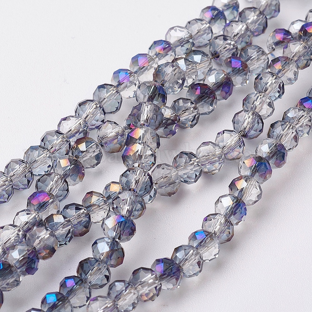 Стеклянные бусины с гальваническим покрытием , с половиным покрытием цвета радуги, граненые, рондель