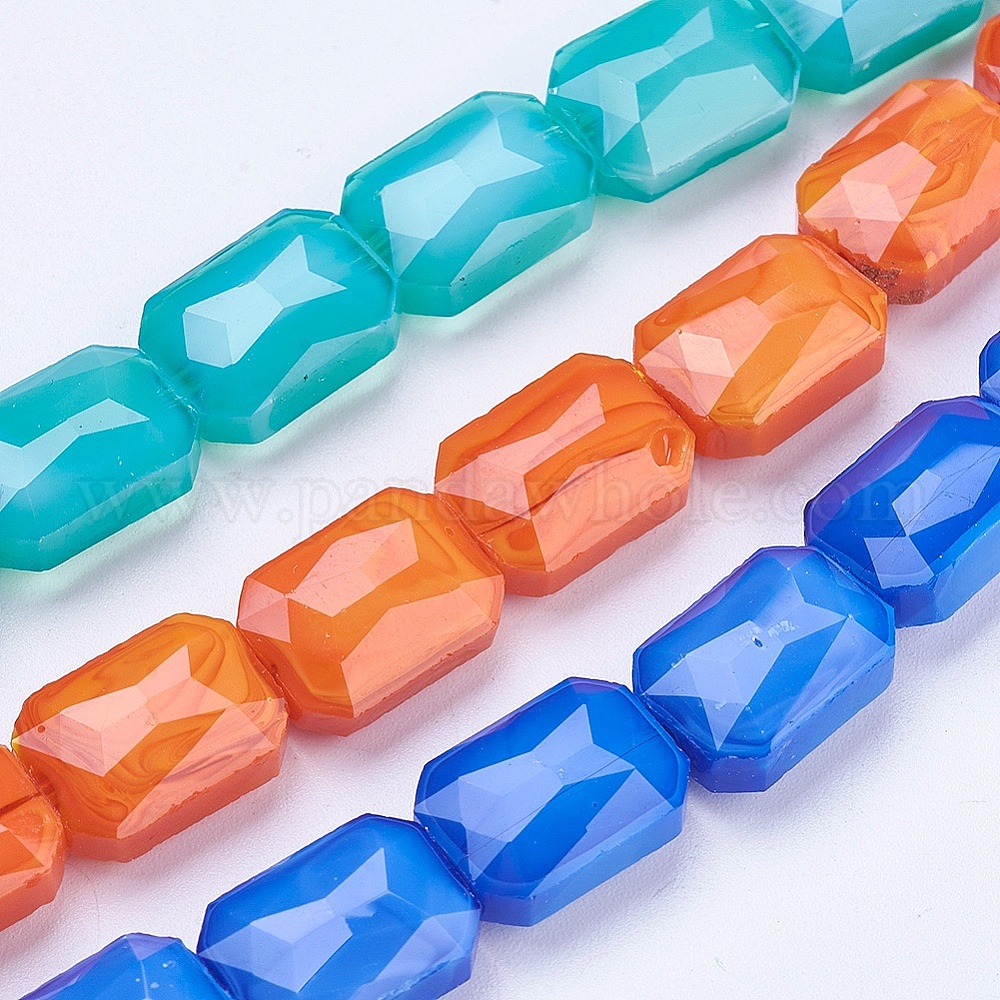 Стеклянные бусины с гальваническим покрытием , граненые, прямоугольные