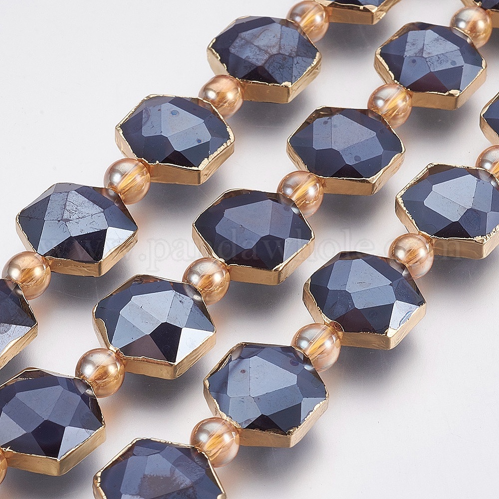 Стеклянные бусины с гальваническим покрытием , граненые, с золотым оттенком латуни, полное покрытие, шестиугольник & круглый