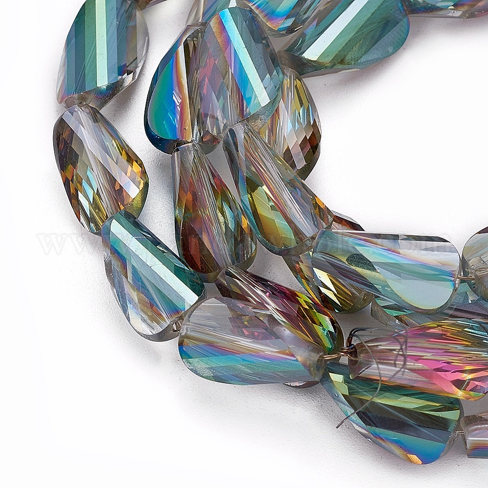 Стеклянные бусины с гальваническим покрытием , с половиным покрытием, граненые, витая слеза