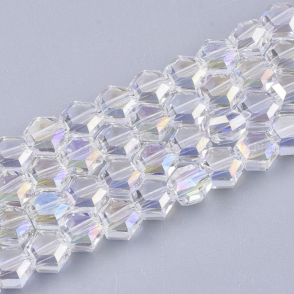 Стеклянные бусины с гальваническим покрытием , граненые, шестиугольник