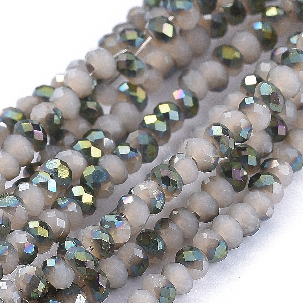 Стеклянные бусины с гальваническим покрытием , с половиным покрытием, граненые, рондель