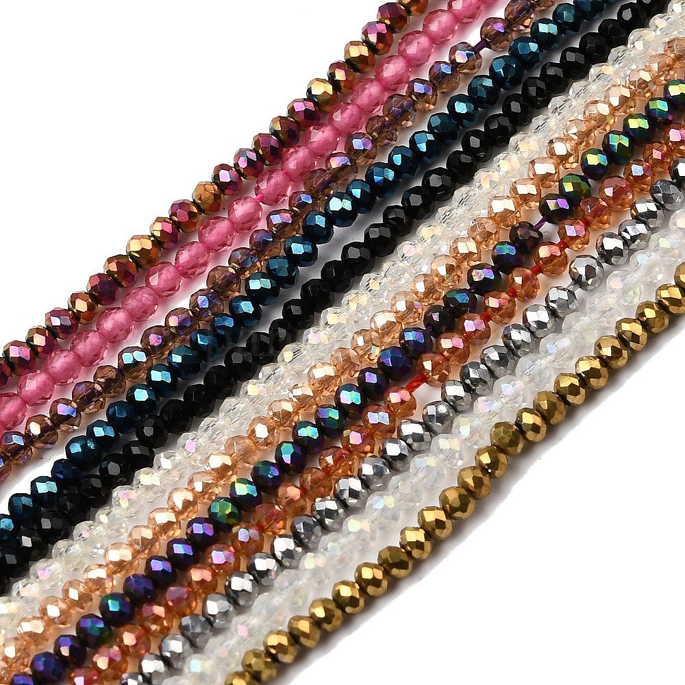 Стеклянные бусины с гальваническим покрытием , граненые, разнообразные, рондель
