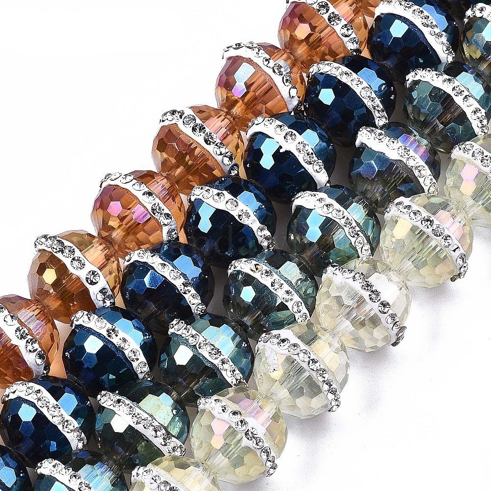 Гальванические стеклянные бусины, с покрытием AB цвета, с кристально горный хрусталь, граненые круглые